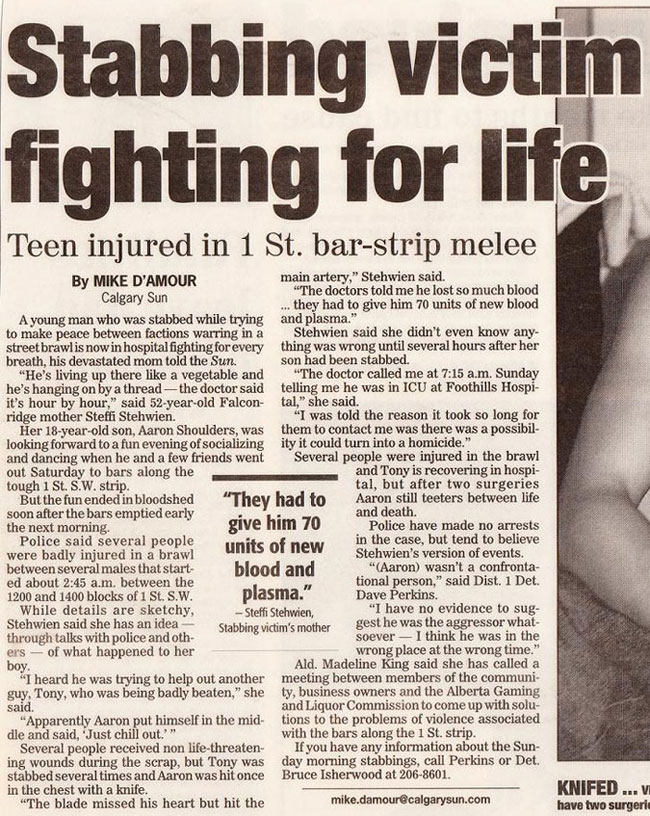 slicing all his main organs. The police officer had to stay by Aaron’s
