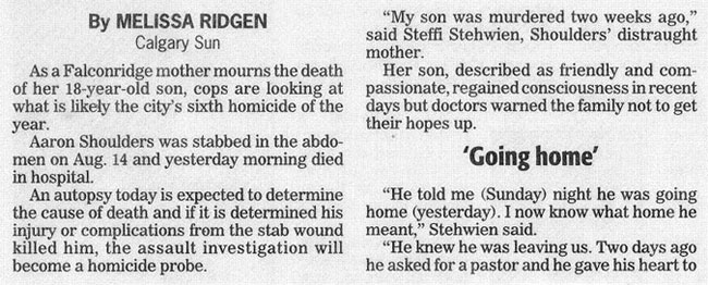 his 18th birthday on July 24th, 2003. Aaron was a sensitive, kind