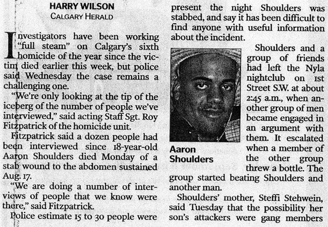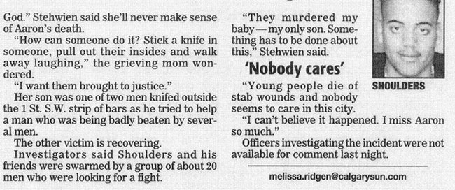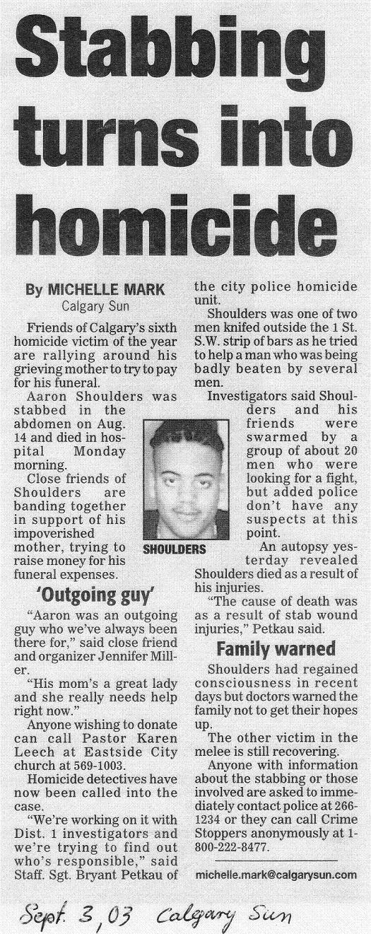 No Justice to this day for Aaron Shoulders... the killer(s) are