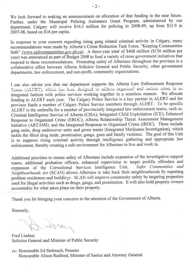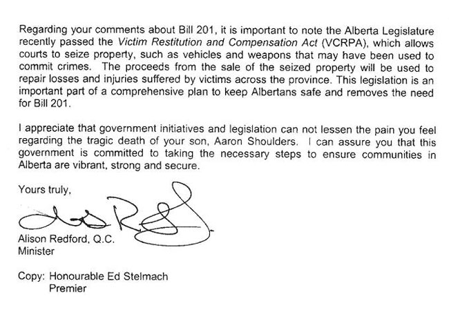 letter sent to the Mayor/Premier/MLAs/MPs/Alderman (September