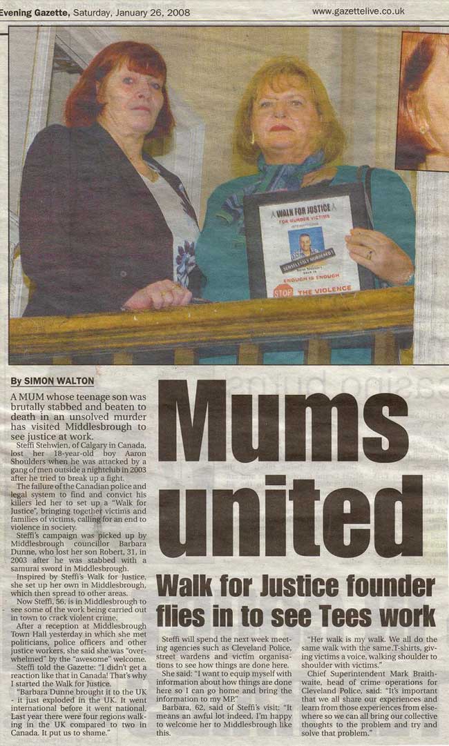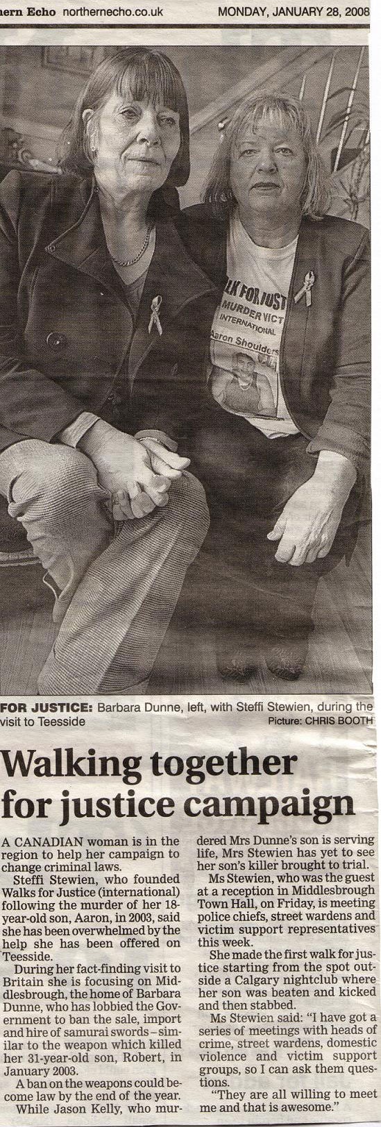 to meet Barbara Dunne, who took my Walk for Justice across the Atlantic and made it International