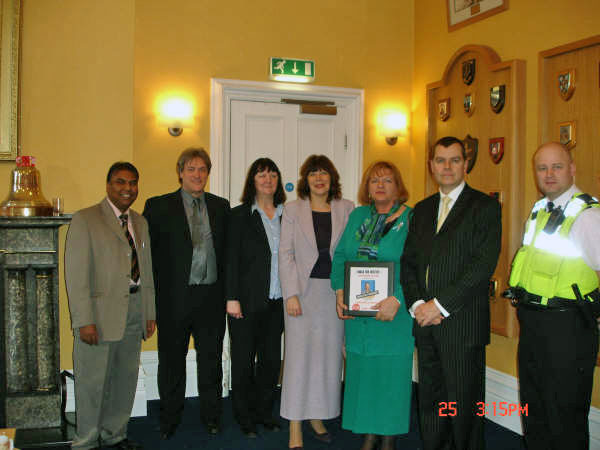 Victim Kay Boil, Community Police Sean Craggs, Behind: Supporter Viv-Carter-Bonsteel, Victim John Cloughlan