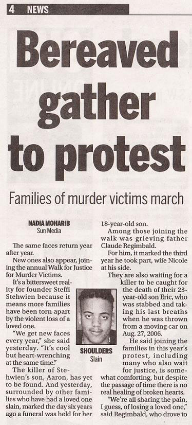 Annual AARON SHOULDERS WALK FOR JUSTICE FOR MURDER